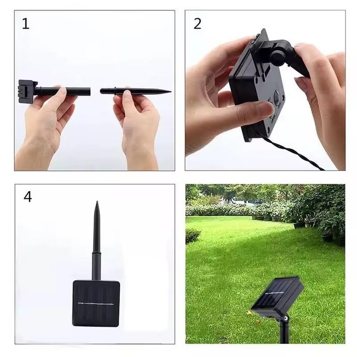 Instalatie Solara Joyful Box, 10 Metri, 100 LED-uri, Alb rece, Panou solar, 8 jocuri de lumini